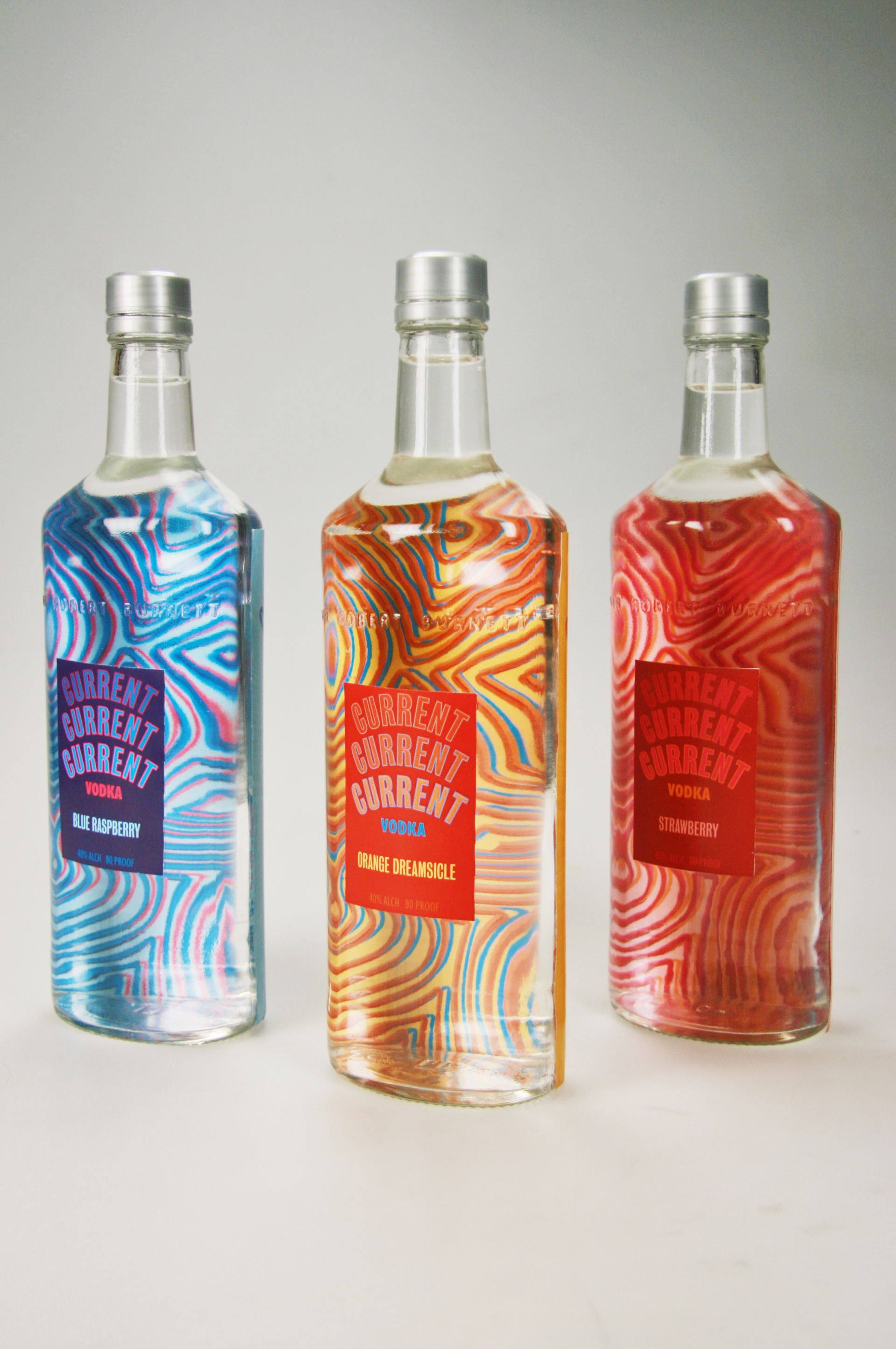 The intention of this project was to create a vodka that could be the life of the party--something as wild as those drinking it. With its bright colors and warped effect, Current Vodka automatically attracts buyers, and gives it the potential of becoming an easily recognizable/iconic weekend drink.